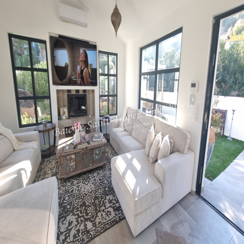 Au calme absolu, dans un domaine recherché de Beauvallon, magnifique villa vue panoramique mer et collines, de 280 m² habitables (+ 100 m² de garage) sur un beau terrain plat paysager de 3700 m², complanté d'essences méditerranéennes. La villa, orientée plein sud, se compose d'une entrée, triple réception avec cheminée et très grande hauteur sous-plafond, donnant sur une immense terrasse avec barbecue extérieur, cuisine indépendante équipée, wc invité, bureau dominant la vue, 2 chambres avec salles de bains ou salles de bains balnéo, à l'étage une chambre avec salle de bains balnéo, en rez-de-jardin appartement séparé avec entrée, très grande chambre, salle de bains balnéo et douche pluie, wc. Belle piscine mosaïque de 11 m x 6 m, ozone, couverte en hiver et chauffée. Chauffage au fioul, climatisation, arrosage automatique, forage, alarme, portail automatique, terrain de boule, potager, parking pour plusieurs voitures. Beaucoup de potentiel, à voir absolument, du calme et du potentiel, à 1 km de la plage et du parcours de golf de Beauvallon.