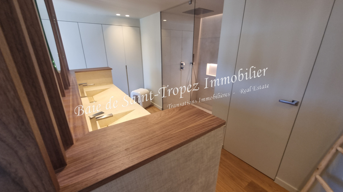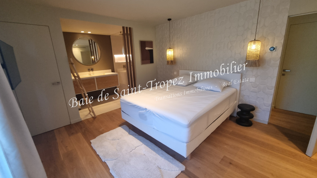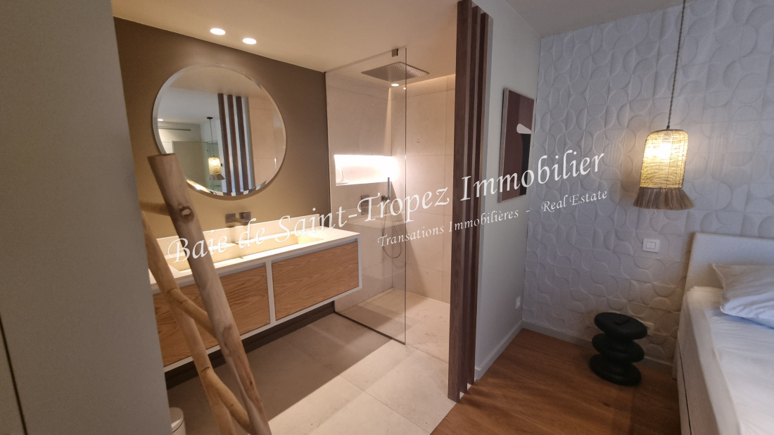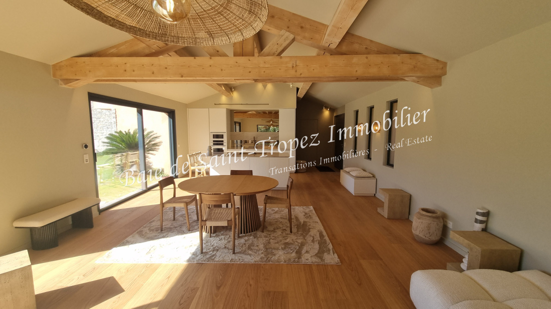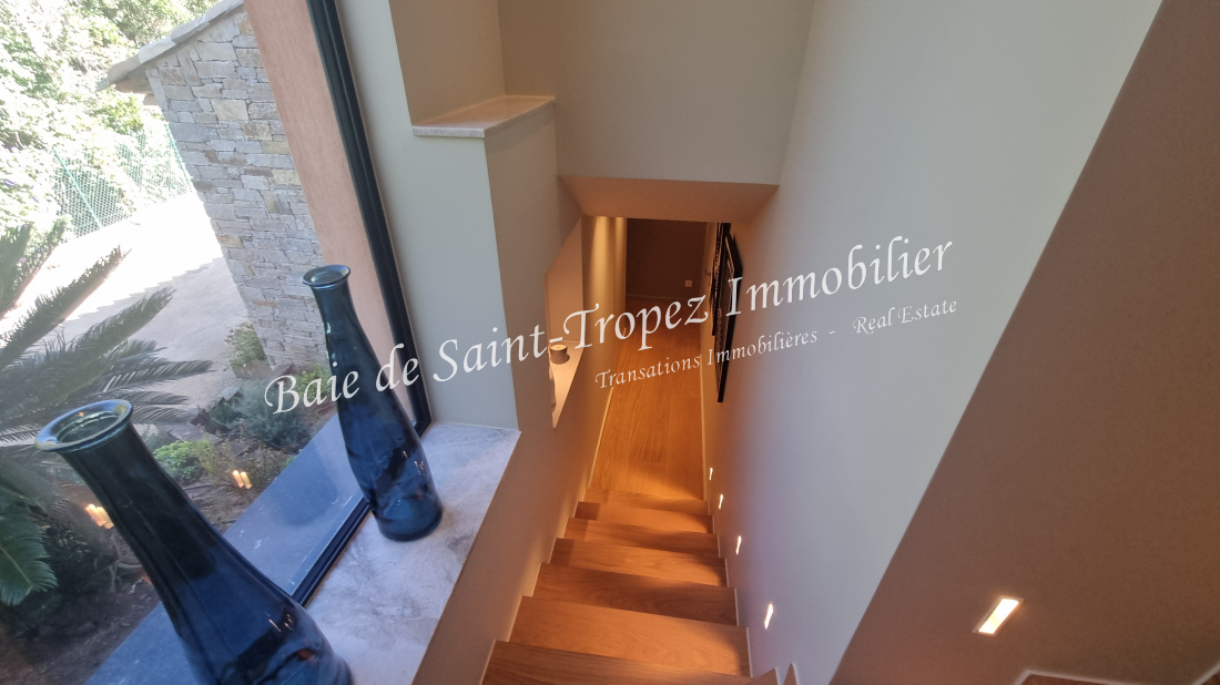 Dans un écrin de nature, avec vue sur les collines et le village de Ramatuelle, trés belle villa récente de 200m² environ sur un beau jardin arboré de 6800m² avec une grande piscine 13m x 5.5 m et son pool house équipé . La maison exposée au sud profite du soleil toute la journée avec ses grandes baies vitrées. Elle se compose d'une entrée, toilettes invités, une grande pièce à vivre traversante avec cuisine ouverte équipée, une chambre en suite avec salle d'eau, wc, placards. A l'étage 3 chambres en suite avec salle d'eau, wc, placards. Au niveau inférieur une buanderie, salle d'eau et wc, grands rangements. Emplacement privilégié, au calme, à quelques minutes du village de Ramatuelle et des plages de Pampelonne. Plusieurs places de parking et un garage ouvert de 58m².