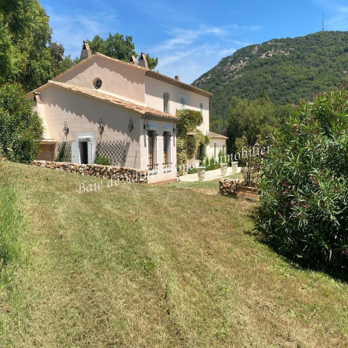Magnifique villa d’environ 200m² avec vue panoramique exceptionnelle sur la mer, les îles et les collines, de toutes les pièces, piscine 9m x 4m au sel et ses grandes plages en teck. Vue mer de toutes les pièces.