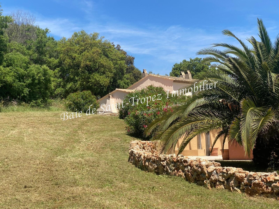 Dans un environnement exceptionnel, au calme et à 4 km sans embouteillage de Port-Grimaud et les plages, belle villa provençale rénovée en 2025 de 260m² environ avec une trés grande piscine de 14m de long (108m²) sur un terrain plat de presque 12000m². La maison se compose d’une grande entrée bureau, de 2 salons avec chacun une cheminée dont un de 6m,50 sous plafond, wc invités, une très grande cuisine-salle à manger à aménager hauteur sous plafond de 5m avec des poutres, arrière-cuisine, 4 chambres en suite avec salle d’eau et wc, une buanderie, barbecue extérieur. Toutes les salle de bains ont été rénovées avec des matériaux italiens, toutes les chambres ont des placards en boiseries intégrés. Triples génoises et tour de porte et fenêtres en pierres. Pool house de 20m² à aménager, local piscine/stockage de 25m², terrain de boule, garage, cave, plusieurs parkings extérieurs. Plusieurs trés grandes terrasses devant la maison et autour de la piscine coin salon sous pergola. Un des 2 salons peut être facilement transformé en cinquième chambre avec salle d'eau. Possibilité de faire un terrain de tennis. Chauffage au gaz et climatisation réversible gainée.