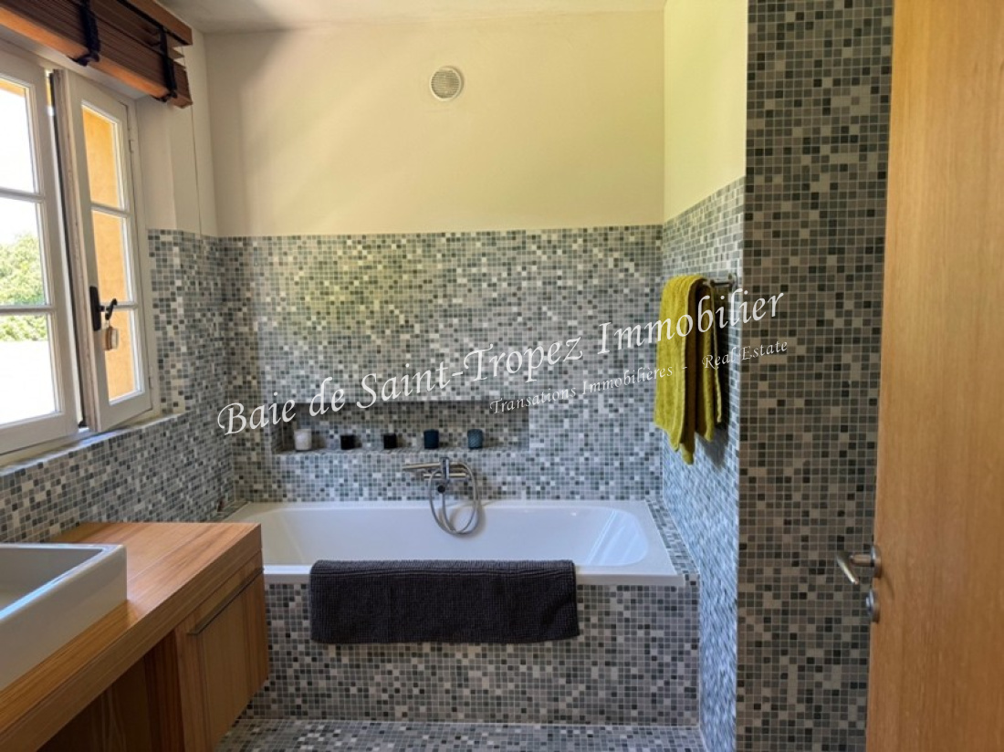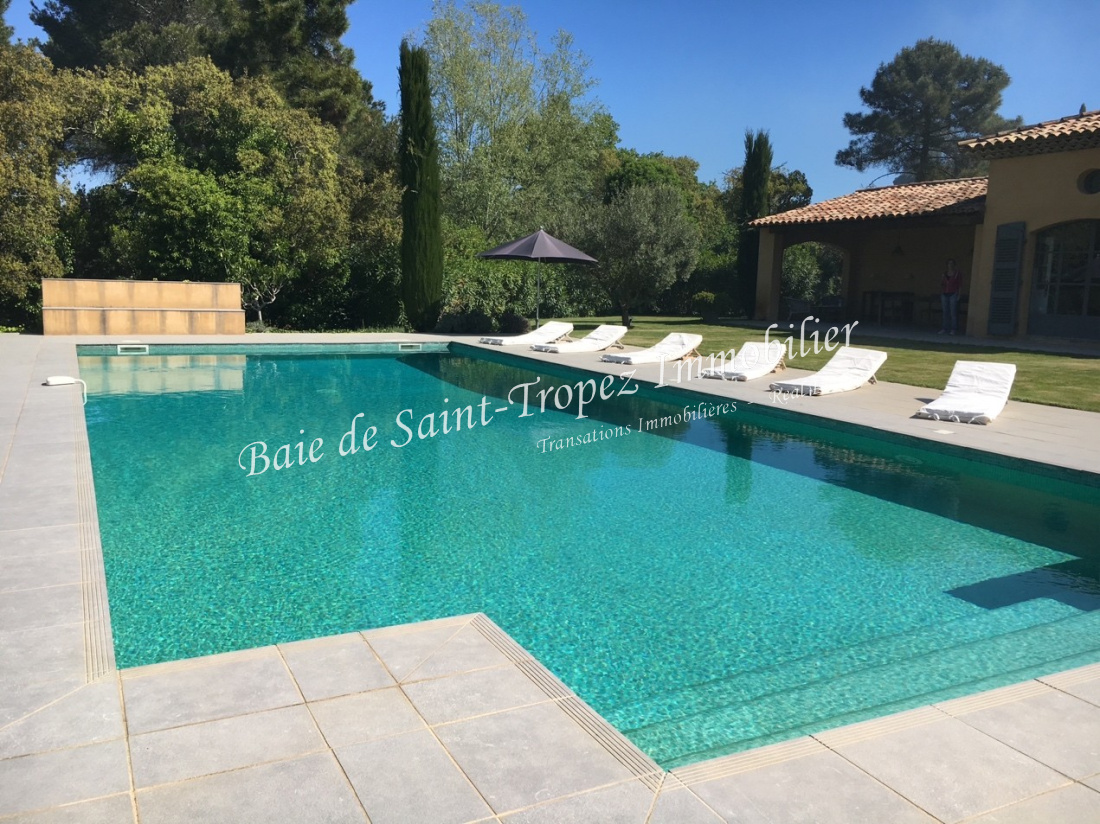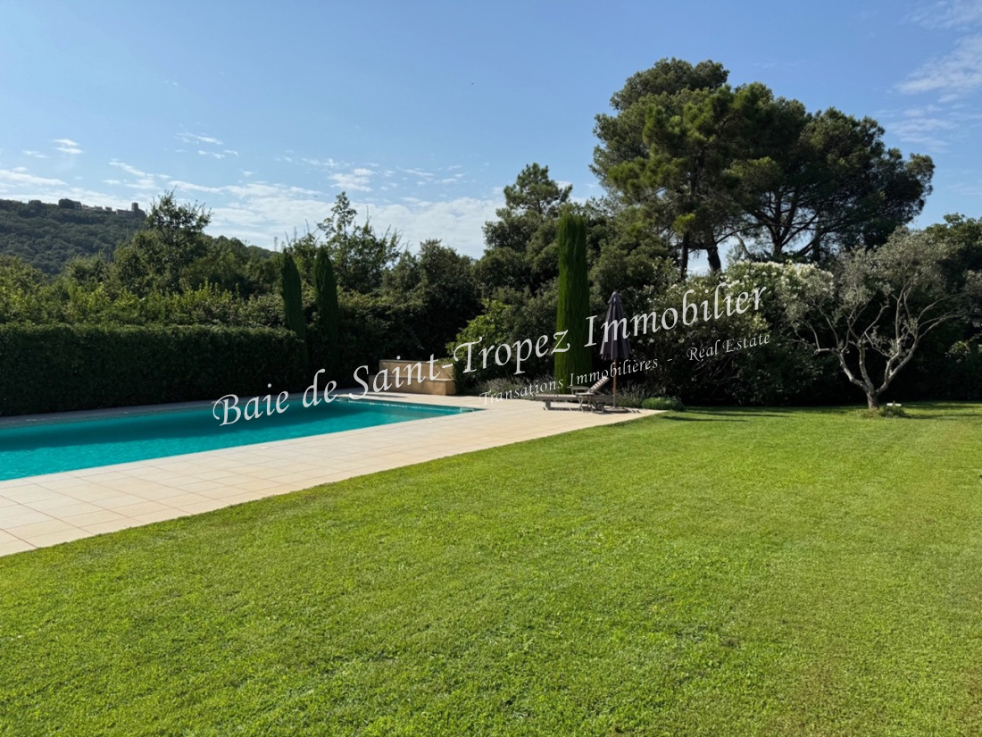 A 6km des plages de Pampelonne sans embouteillage, au calme dans un environnement privilégié, villa de 250 m², et située sur un terrain de 4000 m² (clôturé) avec vue sur les collines et le village de Gassin. La piscine extérieure de 14m x 6m est agrémentée d'une plage avec de transats de piscine. La villa se compose d'une entrée, un grand séjour avec cheminée, une grande cuisine ouverte toute équipée donnant sur la terrasse ombragée pour les repas avec une immense table, 2 chambres en suite avec salle de bains ou douche, wc, dressing et lits 160cm, 2 chambres avec 2 lits de 90cm, une salle de bains, 1wc. Plusieurs terrasses , terrain de boule, table de ping pong, grand salon d'extérieur, plusieurs places de parking dans le parc. Saint-Tropez à 6km. Toutes les chambres sont équipées de TV, climatisation, wifi, alarme. Pour 8 personnes max, ménage de 5 heures /semaine inclus dans le prix ainsi que les draps et linges. Prix : Encore disponible du 10 Juillet au 31 Août 2026 : 10600 euros/semaine