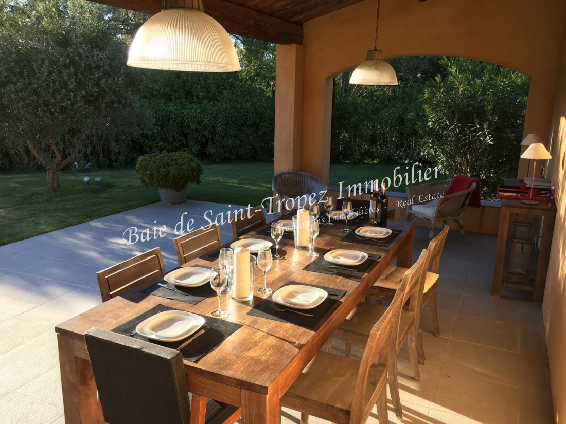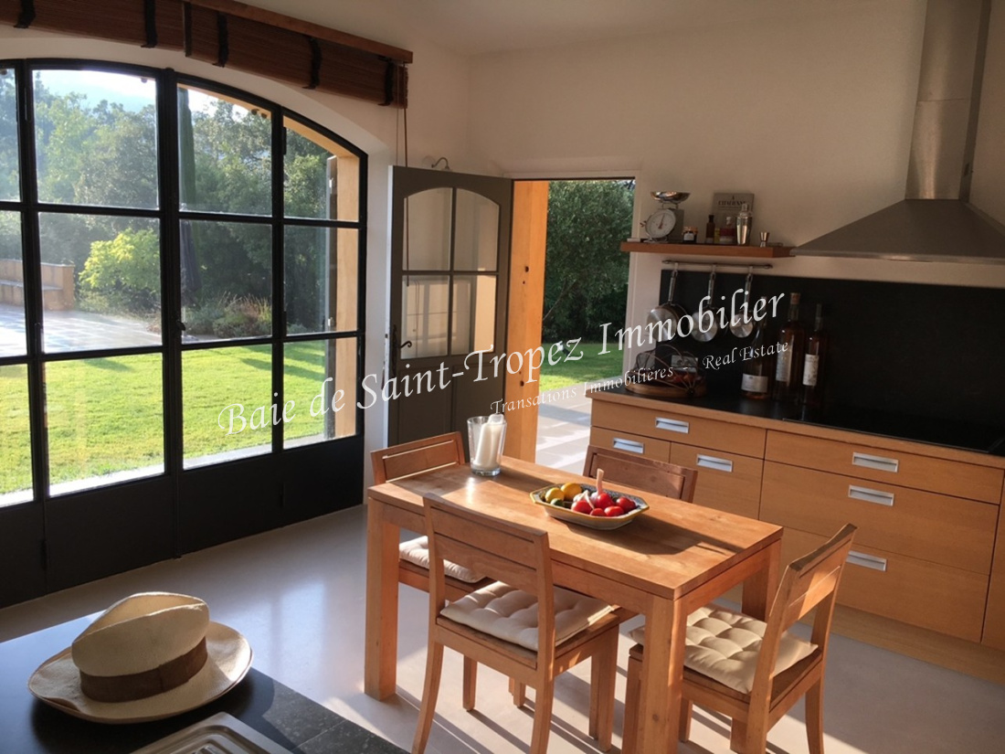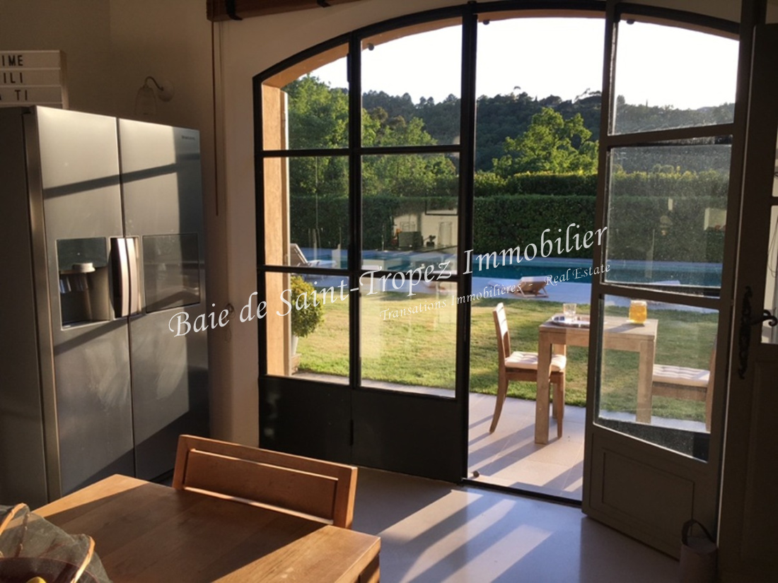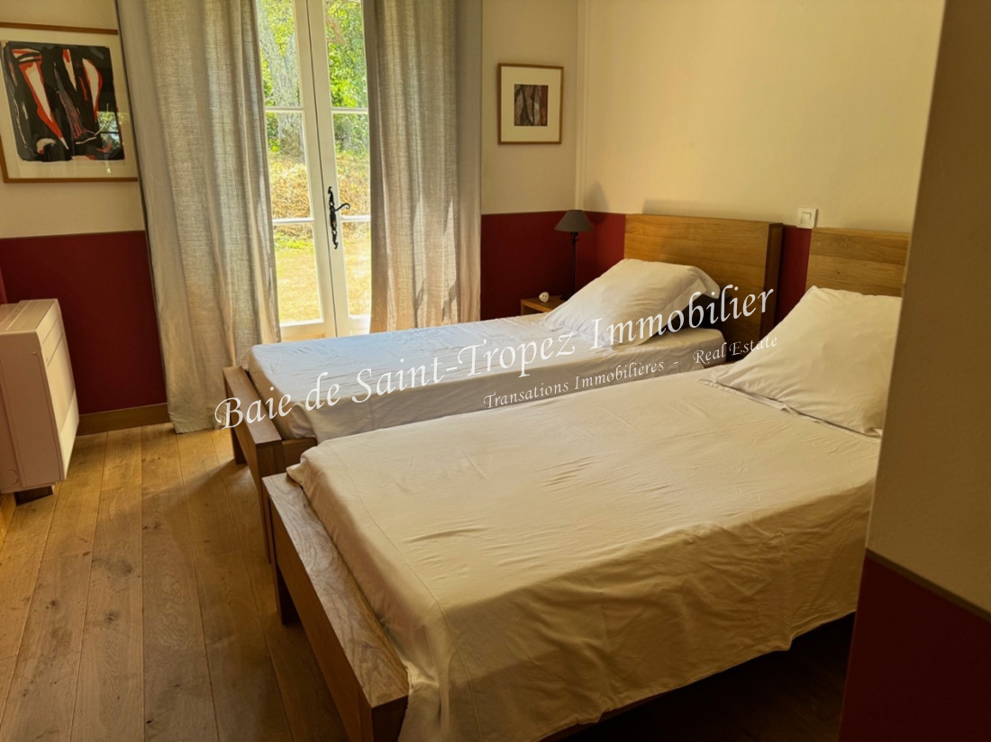 A 6km des plages de Pampelonne sans embouteillage, au calme dans un environnement privilégié, villa de 250 m², et située sur un terrain de 4000 m² (clôturé) avec vue sur les collines et le village de Gassin. La piscine extérieure de 14m x 6m est agrémentée d'une plage avec de transats de piscine. La villa se compose d'une entrée, un grand séjour avec cheminée, une grande cuisine ouverte toute équipée donnant sur la terrasse ombragée pour les repas avec une immense table, 2 chambres en suite avec salle de bains ou douche, wc, dressing et lits 160cm, 2 chambres avec 2 lits de 90cm, une salle de bains, 1wc. Plusieurs terrasses , terrain de boule, table de ping pong, grand salon d'extérieur, plusieurs places de parking dans le parc. Saint-Tropez à 6km. Toutes les chambres sont équipées de TV, climatisation, wifi, alarme. Pour 8 personnes max, ménage de 5 heures /semaine inclus dans le prix ainsi que les draps et linges. Prix : Encore disponible du 10 Juillet au 31 Août 2026 : 10600 euros/semaine